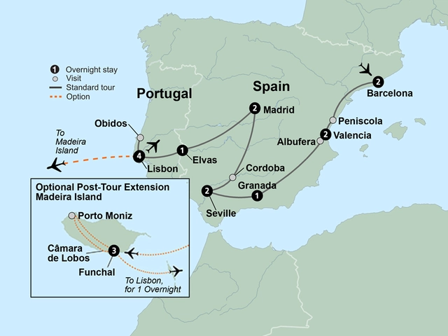 Embark on an Iberian adventure as you take in medieval architecture, idyllic landscapes, and delectable cuisine. Embark on a panoramic tour of Barcelona and view view Antoni Gaudí’s architectural masterpieces, including La Sagrada Familia. Enjoy an authentic paella experience with lunch. Visit the exotic and expansive Alhambra Palace. Enjoy the fascinating art form that is flamenco. Marvel at the timeless masterpieces at the Prado Museum. Explore Lisbon, Europe’s second oldest capital city. Visit Belém and its many monuments. Visit the medieval walled town of Obidos. Explore Spain and Portugal’s culture and history set against a backdrop of sunny Mediterranean shores and grand mountain ranges.